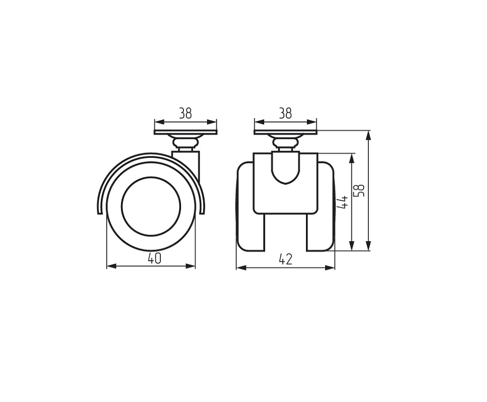 Опора колесная d40 мм резиновый ход (серый)