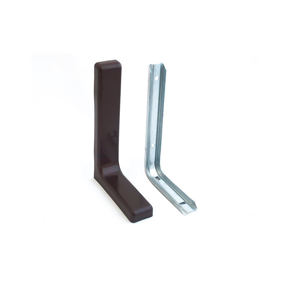используют для монтажа стеллажей, настенных и внутренних полок шкафов . Кронштейн изготовлен из стали, на который защелкивается цветная пластиковая накладка. Выдерживают нагрузку до 20 кг на пару.