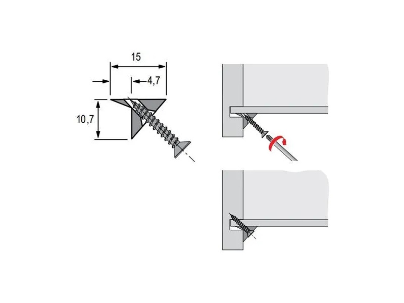 Соединитель задней стенки RV8 от Hettich предназначен для надежного крепления днищ ящиков и задних стенок шкафов. Этот аксессуар обеспечивает прочную фиксацию элементов мебели, предотвращая их смещение и деформацию при эксплуатации.