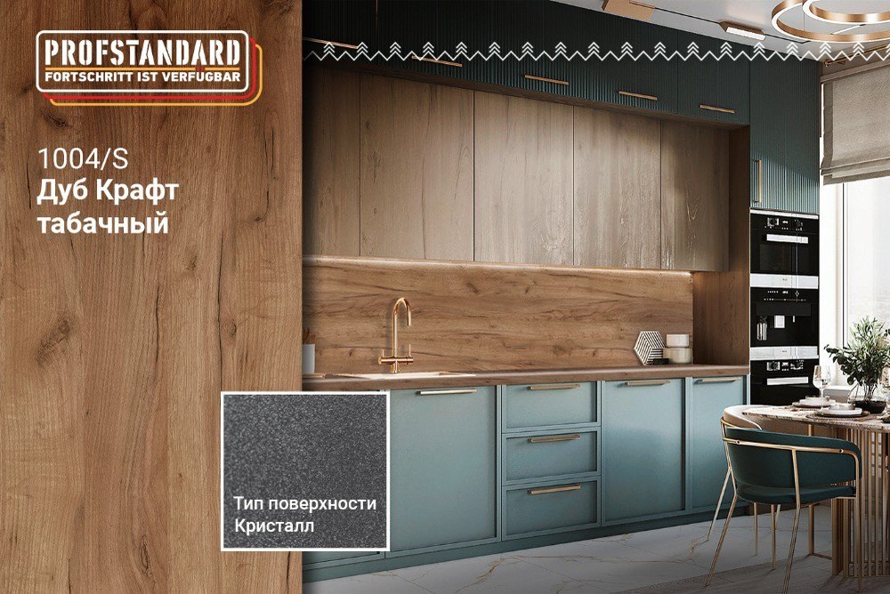 Столешница 3050x600x40 1U 1004 Дуб Крафт табачный //1 обладает влагостойким слоем, который обеспечивает надежную защиту от разбухания столешницы при частом контакте с водой, благодаря качественной герметизации. Столешницы устойчивы к различным бытовым химиям, чернилам, пищевым кислотам и ультрафиолетовому излучению, что сохраняет их внешний вид и функциональность. Также они обладают высокой стойкостью к механическим повреждениям, таким как царапины и сколы и выдерживают высокие температуры без образования следов от горячей посуды.