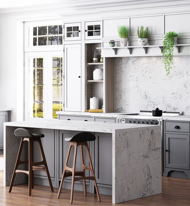 Оставьте всё лишнее за дверьми своего дома и окунитесь в кристально прозрачную атмосферу солнечного весеннего утра с декором Мрамор Сорренто, который, как глоток свежего воздуха, подарит интерьеру Вашей кухни легкость и свежесть.